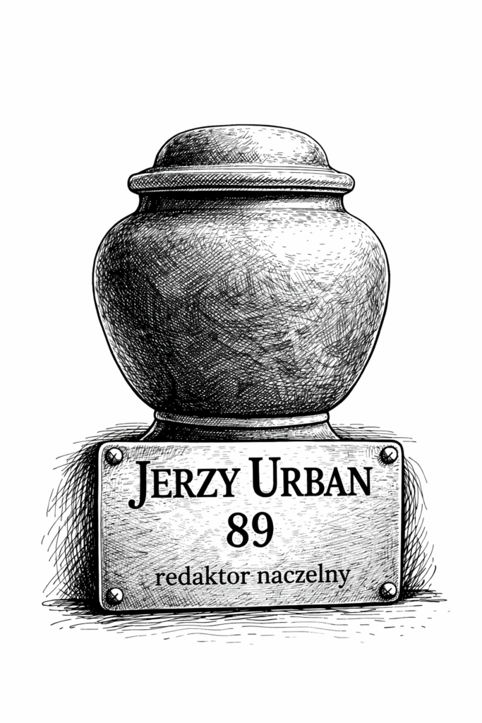 Ostatnio widziano redaktora Jerzego Urbana, który — jak to Urban — postanowił zakończyć karierę w sposób nieoczywisty: transformując z prezesa firmy URMA w prochową URNĘ. Mówiąc w skrócie: z medialnego giganta w elegancki, kamienny wazon (wizualizacja obok). Nie była to jednak byle jaka transformacja — raczej świadomy, autorski performance, zgodny z duchem czasu: ekologiczny, minimalistyczny i z pełnym certyfikatem autentyczności.